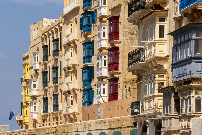 Almost everything in Malta was originally built from the same honey-colored rock. To add some color and interest to their architecture, the Maltese have developed a unique way of decorating the bay windows of their houses. You can see these colorful facades throughout all the old towns.