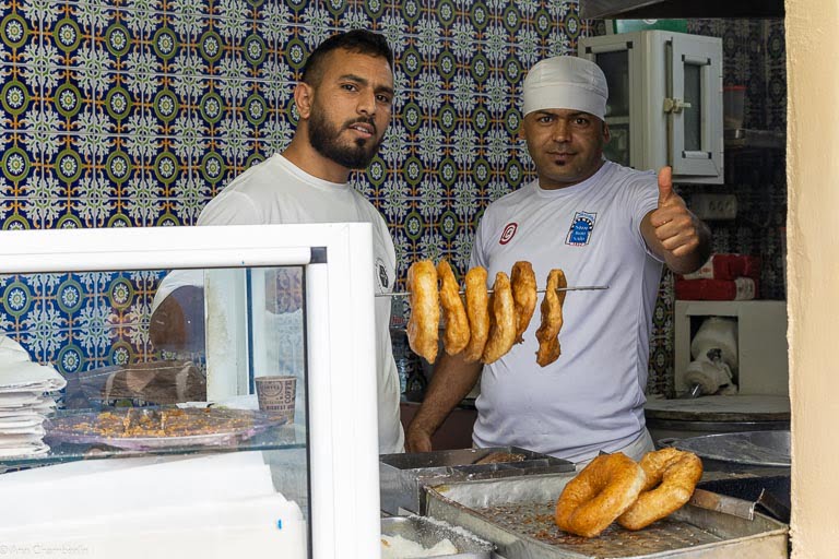 We started our excursion in the seaside town of Sidi Bou Said. Along with its neighbor La Marsa, these are the upscale suburbs of Tunis. The first thing that strikes you is that most of the buildings are whitewashed, with blue trim. The next is that there are flowers everywhere. Huge stands of bougainvillea and jasmine surround many of the compounds. It’s a feast for the senses.